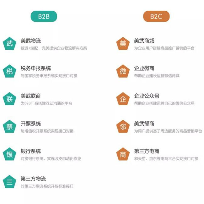 美武系统本着提供B2B+B2C的商业生态与闭环产业互联网模式,为用户提供全面系统的运营解决方案。